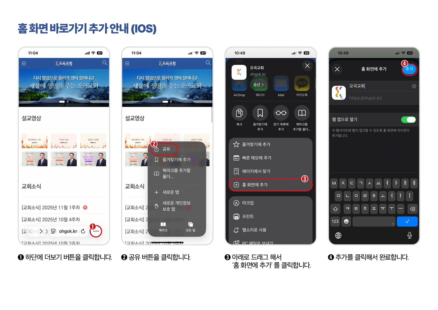 홈화면 바로가기 추가 안내 (안드로이드 / IOS)
